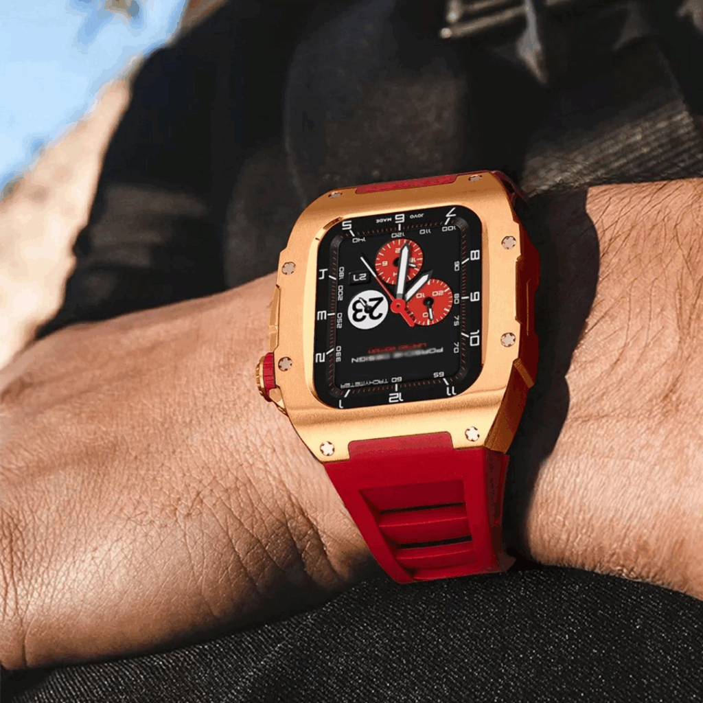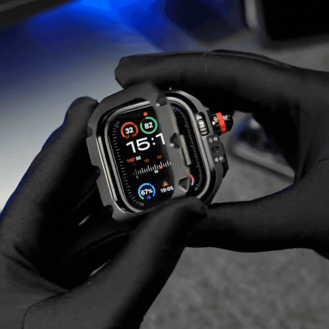 “Scocca intercambiabile in titanio, resistente e leggera, che permette di personalizzare lo stile del tuo smartwatch senza compromettere robustezza e comfort. Un design esclusivo che unisce eleganza, durata e funzionalità avanzate per accompagnarti in ogni momento della giornata.